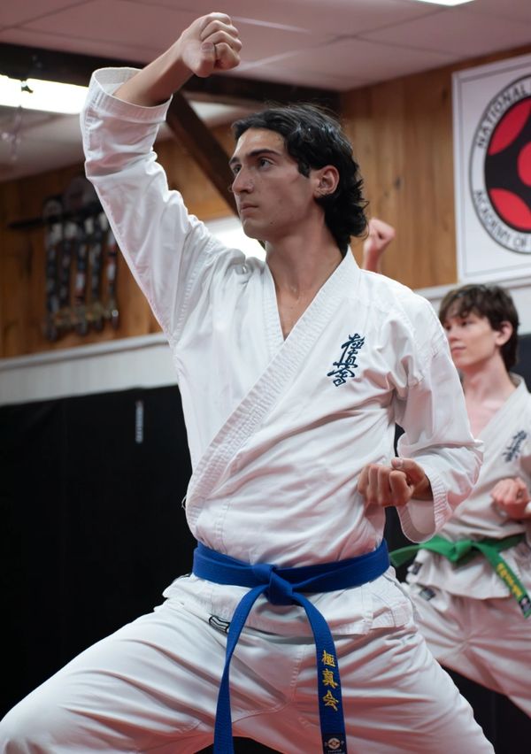 Kyokushin Karate is a full-contact, knockdown style of karate founded in the 1950s by Masutatsu Ōyama. It is known for its hard conditioning, powerful strikes, and emphasis on real-world toughness and spirit. Known as the strongest Karate, Kyokushin is respected worldwide for producing fighters with exceptional durability, humility, and fighting spirit, and it has strongly influenced kickboxing and modern MMA. Offered to students 10 and above (with our new Youth Kyokushin program for ages 10-14), this style is open to people of all levels wishing to increase their overall mental and physical fortitude while learning an efficient fighting style and effective form of self defense.